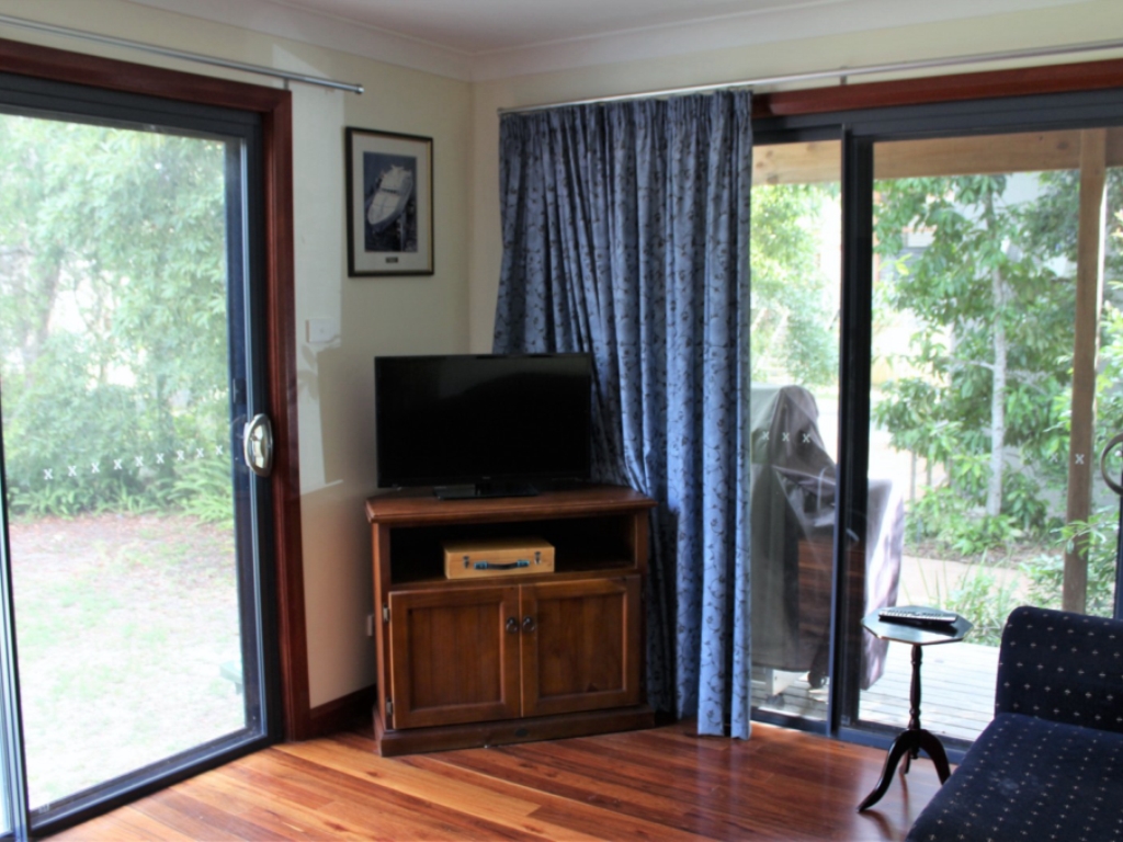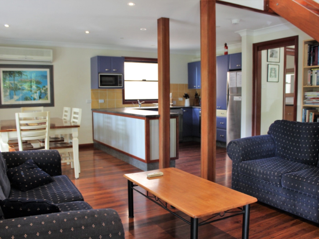 This delightful 2 bedroom holiday cottage is in a fabulous location, within easy walking distance to Glorious Jimmy’s Beach and the Magical Myall River. All living areas and laundry/bathroom are downstairs with bedrooms upstairs. Features include quality appliances and furnishings such as dishwasher, microwave, gas BBQ and outdoor setting. Two off-street parking spaces.