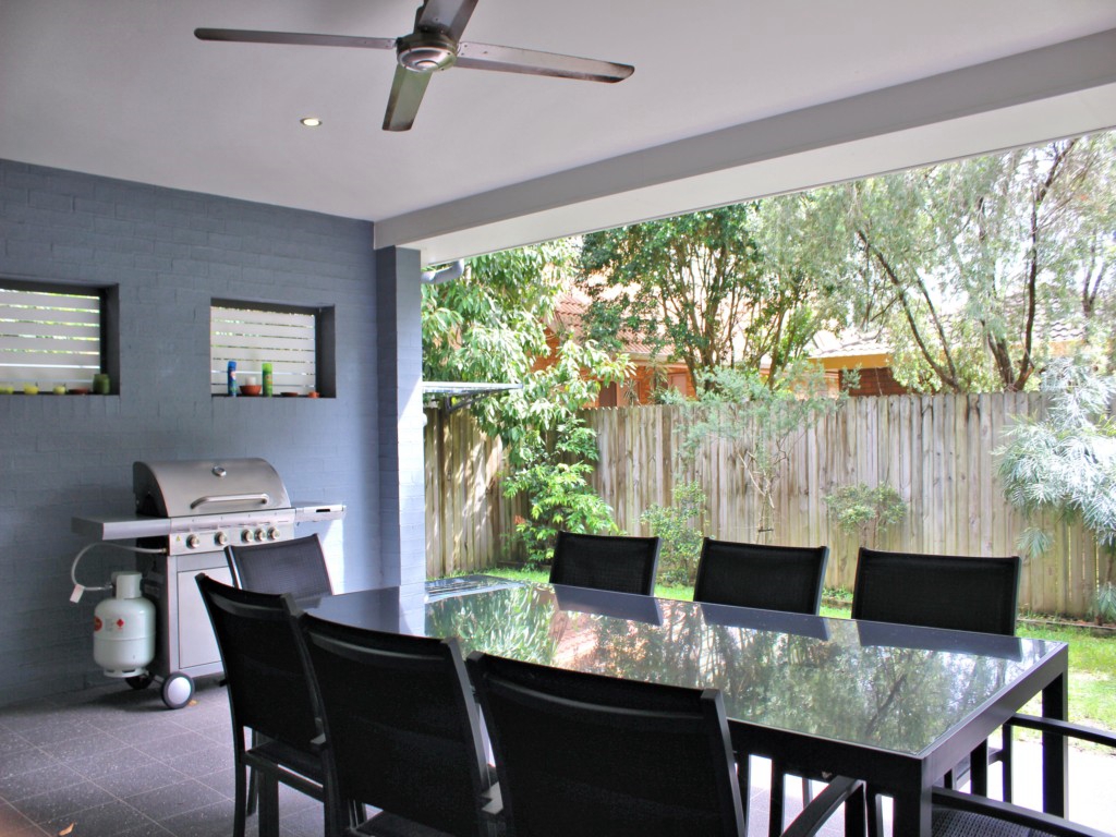 Air-conditioned. Outdoor undercover entertaining area with gas bbq and outdoor setting.