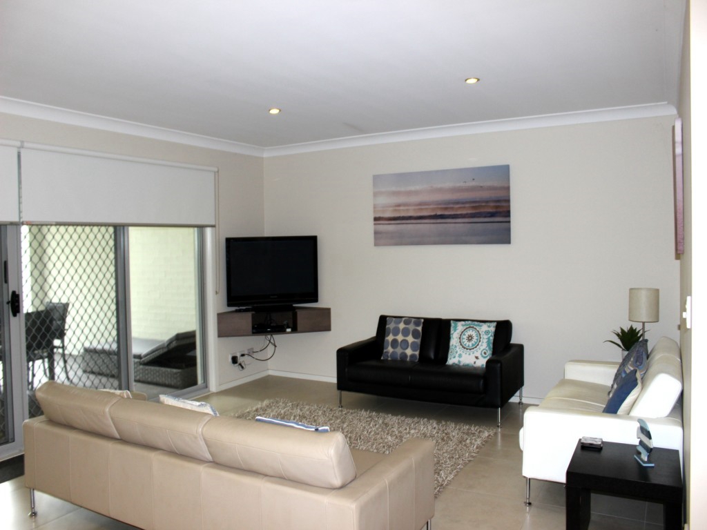 This modern three bedroom townhouse with modern appliances throughout, open plan living area and outdoor dining, theatre room for the children. Upstairs has three bedrooms with ensuite to the main. Features include Air Conditioning, Flat screen TV, DVD, DW, WM & Dryer, SL
