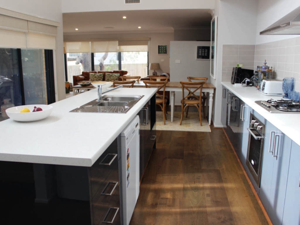 Galley kitchen with all modern appliances including dishwasher, micro-wave, gas cook-top. Opens out to outdoor patio. A 'butlers kitchen' between kitchen and laundry.