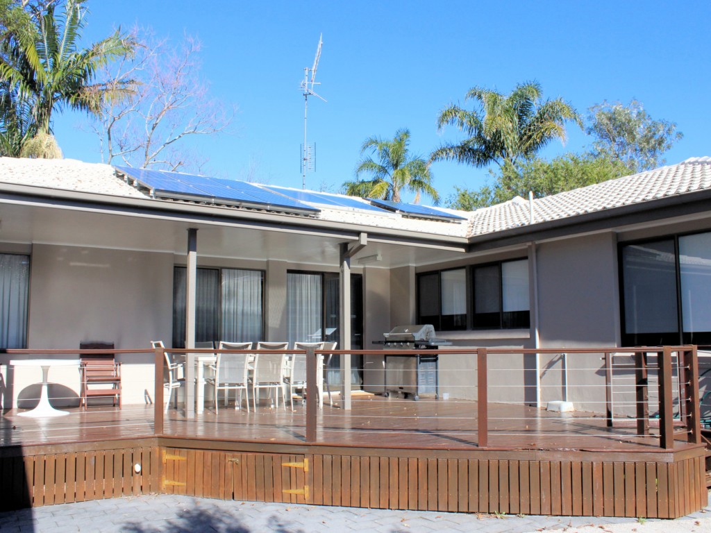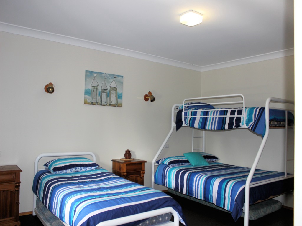 ‘PET FRIENDLY’ & AIR-CONDITIONED. Spacious holiday home offering both a loungeroom and a family room for plenty of space for adults and children. Two bathrooms, one with spa bath – ideal for two families. The family room is air-conditioned. Centrally located between shops, surf beach and Jimmy’s Beach. Features include a microwave, colour TV, DVD/VCR Combo, CD Player, dryer, a gas BBQ and an outdoor setting on a fantastic, large timber deck and plenty of off street parking. Pet friendly, Garage Not Available.