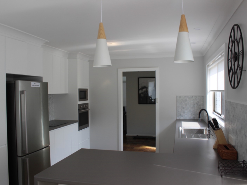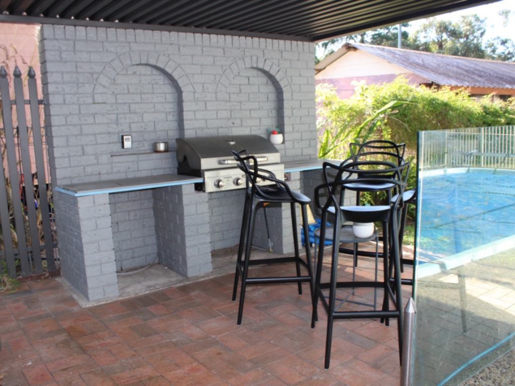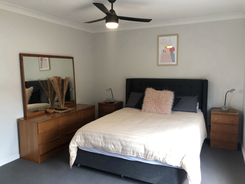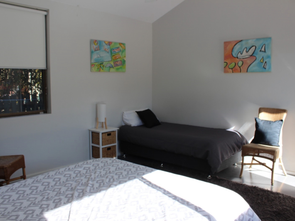 2 single beds, ceiling fans; BEDROOM FOUR: renovated garage has queen bed, single bed and ceiling fans. Off Alfresco area.