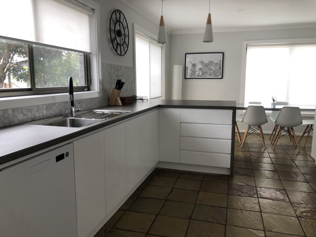 Modern and spacious with dishwasher.