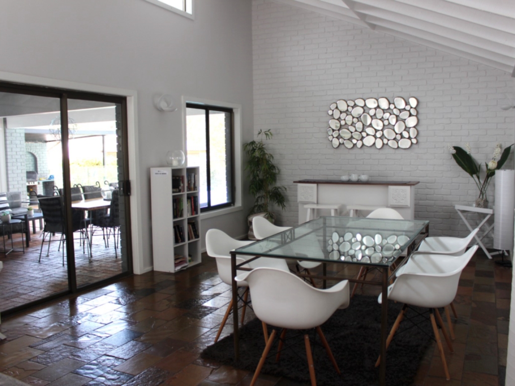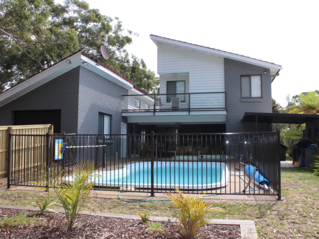 A beautifully appointed holiday home with swimming pool and air-conditioning. Wonderfull and relaxing indoor-outdoor area, spacious fmaily lounge area as well as plenty of kitchen space and dining areas. Directly across form the Hawks Nest Golf Course making this an ideal getaway for the discerning golfer. Only a ten minute walk to the beaches and shopping precinct, this is in an ideal location. Enjoy Summer evenings in the swimming pool, loads of space for the whole family.